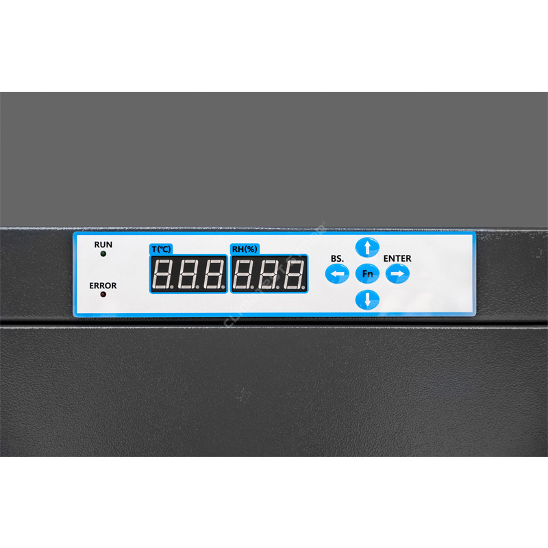 电子干燥柜采用高精度瑞士进口RH和温度传感器,传感器自动控制合成干燥剂的刷新和回收,精度为2%。